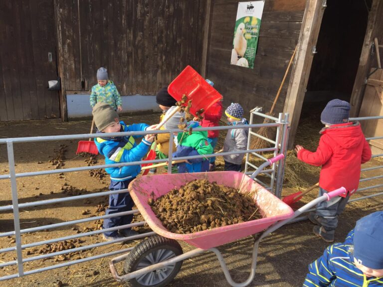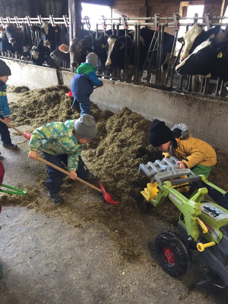Hier wird gerade gebaggert, wir schaufeln mit und füttern die hungrigen Kühe.