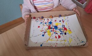 Das Erkennen und Benennen der einzelnen Farben gehört ebenso zu den vermittelten Kenntnissen wie die Entstehung der Mischfarben. Spiel und Bastelarbeiten ermöglichen die gezielte Förderung der Kinder.