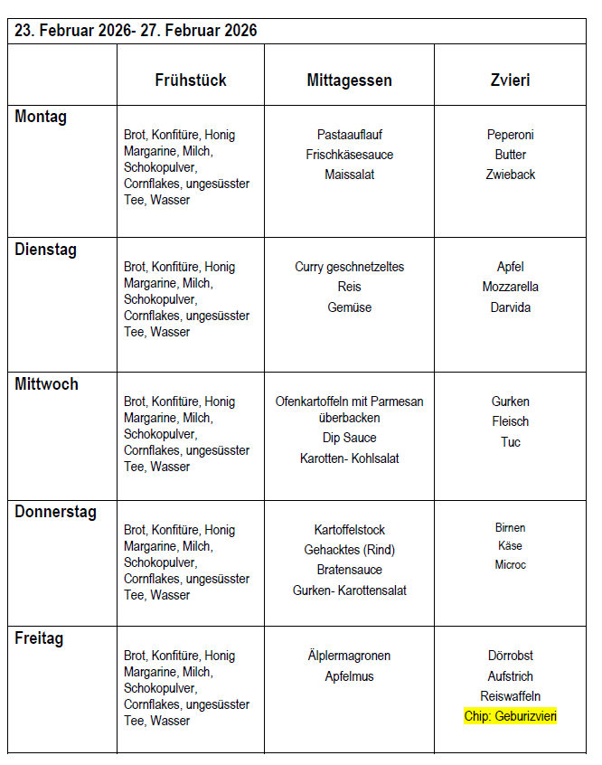Anmeldungen und Reservationen bitte beim Betreuungsteam. Die Kosten sind im Voraus und möglichst abgezählt zu entrichten.