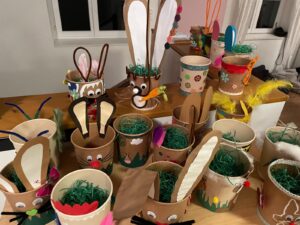 Mit Unterstützung der Eltern haben die Kinder herzige Osternestchen gebastelt.