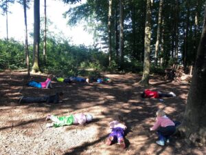 Von Nicolay angeleitet und mit Musik untermalt, hat die erste Yogastunde im Wald stattgefunden. Den Kindern hat es offensichtlich Spass gemacht. Man sieht es auf den Bildern: sie hatten die Bewegungsabläufe sofort im Griff.